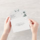 An improved version of the tri-fold invitation now with a tear away rsvp section. Enjoy a minimalist watercolor eucalyptus illustration combined with an elegant calligraphy typography and a monogram. This all-in-one sustainable invitation would save you money, no need to include RSVP envelopes, your guests will tear away the last panel and mail it back to you as a postcard.
