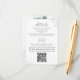 this design features simple elegant website details, information calligraphy eucalyptus info, modern web address watercolor, rsvp online theknot.com foliage, rsvp QR code minimalist green, botanical greenery elegant and modern, with watercolor green foliage web address, web internet guest response, an rsvp online on-site, elegant watercolor floral modern website. With QR code for your guest to easily rsvp online via your wedding website.