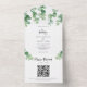 Elegant all-in-one eucalyptus wedding invitation with QR code.