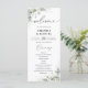 The Elegant Eucalyptus Wedding Program features graceful eucalyptus greenery paired with a clean and refined layout, creating a timeless and sophisticated design. This program is perfect for guiding guests through your ceremony while complementing greenery, garden, or nature-inspired wedding themes. Its elegant botanical style coordinates beautifully with matching wedding stationery, helping to create a cohesive and polished wedding suite.