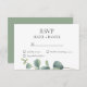Minimalist Greenery Design RSVP card. This elegant wedding RSVP card features a minimalist design with soft watercolor eucalyptus greenery, perfect for modern, rustic, or botanical-themed weddings. Featuring a clean layout with customisable guest response options, this card coordinates beautifully with a wide range of wedding stationery. Personalised with the couple's names and a tasteful green backing, it's ideal for couples looking for a simple yet refined response card to match their wedding aesthetic.