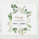 These elegant eucalyptus wedding sparkling wine labels are perfect for a tropical wedding. The design features artistically hand-painted beautiful eucalyptus green leaves arranged into geometric shapes, inspiring natural beauty. Make the wine bottle stickers your own by including your names and the date of your event. These labels can compliment the wedding reception, rehearsal dinner, or simply change the wording to suit any celebration.