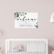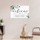 Modern simple and elegant with calligraphy "welcome" and eucalyptus greenery foliage wedding sign.