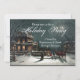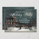 Vintage painting of guests arriving at a formal holiday or Christmas dinner party. Perfect scenic winter night with horses and old-time tradition. CustomChristmasPhotoCards.com