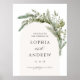 Winter Greenery Arch Wedding Sign featuring an arched frame of watercolor evergreens. Customise with your information. Click "click to customise further" to change the font style, size or colour.