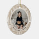 Celebrate the magic of the season with this elegant ceramic photo Christmas ornament, beautifully crafted to showcase two cherished memories. Featuring a sophisticated triple-circle frame design, this ornament displays one photo on the front and one on the back—perfect for capturing your little one’s smiling face, a precious family moment, or a holiday milestone. Personalised with your child's name and the year, this keepsake adds a timeless touch to your holiday décor. Designed with care and made to last, it’s a meaningful addition to your tree or a heartfelt gift for loved ones. A blend of elegance, sentiment, and holiday spirit—all in one memorable ornament. Original hand-drawn illustrations and Design by ©Moodthology Papery.