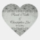 This elegant vintage heart shaped wedding favour sticker has a black damask border at the top and bottom with a faded silver grey background. In the centre, you can easily customise the names of the bride and groom along with the date of the upcoming nuptials. This is a beautiful wedding sticker that would be great for all of the seasons especially for fall / autumn and winter.