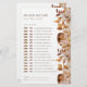This elegant He Said, She Said bridal shower game features a beautiful real gold foil frame and hand-painted boho watercolor burnt orange and terracotta leaves, cream and beige dahlias, and beautiful rust-coloured roses on a white background. Find matching items in the Bridal Shower Autumn Romance Collection.