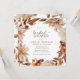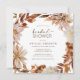 These elegant square bridal shower invitations feature hand-painted watercolor burnt orange and terracotta leaves, cream and beige dahlias, and beautiful rust-coloured roses on a white background. Find matching items in the White Autumn Romance Collection.