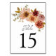 Elegant Fall Floral Wedding Table Number Sign