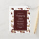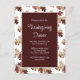 Elegant Thanksgiving Dinner Invitation postcard with a red burgundy background and a colourful fall foliage. With white typography lettering, you can add your own information. The back of the invitation has a customisable menu to share your cuisine choices with your guests. A lovely autumn invite to give thanks with loved ones.