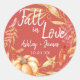 Elegant Fall in Love Autumn Red Wedding Monogram Classic Round Sticker