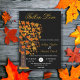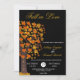 This elegant fall wedding invitation is perfect for a modern autumn wedding. The simple design features a tree and fall leaves with elegant white and yellow typography on a black background.