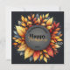 Send warm wishes with this sophisticated Thanksgiving flat card. The design features a stunning, vibrant autumn wreath of fall leaves on a deep charcoal background. Easily personalise the central badge with your Family Name and the Year in elegant gold script. A modern, high-end keepsake perfect for sharing gratitude this holiday season.
