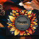This elegant Thanksgiving postcard features a central circular grey plaque with a sophisticated golden trim. The plaque showcases fully customisable text, allowing you to personalise it with your family name, a warm “Happy Thanksgiving” greeting, and the current year. The upper half of the circle displays the family name in a stylish cursive script, while the bold, larger letters below convey the festive message. The year “20XX” at the bottom can be updated to reflect the current year.