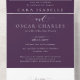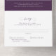 With classic and elegant typography, this formal wedding invitation sets the tone for a timeless wedding. The stylish deep plum purple background can be changed by clicking "customise further." Perfect for an autumn wedding. There is plenty of room for all the wedding and reception details and the detachable RSVP card can be sent as a postcard.