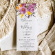Elegant fall winter purple floral wedding program featuring a modern and elegant calligraphy the wedding of Script in purple, orange and yellow flowers with sage green foliage.