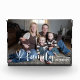 Elegant modern and stylish custom horizontal tabletop photo block. This design features a custom photo with a minimal text "family" typography overlay design with elegant flourish and cute heart details with custom family name.