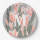 Elegant Family Name Monogram Peach Tulips Painting Paper Plate