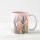 Elegant Family Name Monogram Peach Tulips Painting Two-Tone Coffee Mug