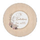 On a classic beige backround is a round circle adorned with shaded dusky pink and purple watercolor flowers where in the middle you can customise it making it your own. Stylish modern vibes.