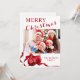 Elegant Family Photo Christas Card. Send warm holiday wishes with this elegant Merry Christmas photo card. Featuring a simple design of red Christmas ornaments adorned with red ribbon. The card features script calligraphy and your photo showcases your cherished fmaily. The christmas ornament enhances the year. This timeless design captures the warmth of this holiday season.