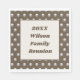 Personalise your family reunion dinner or picnic with these personalised napkins. The polka dot pattern features elegant silver circles against a dark brown background. A large rectangle in the centre features brown and beige colours and provides a solid background for your personalised reunion information. Quickly and easily customise the year and your family name.