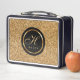 Elegant fancy Gold Glitter Effect Monogram Initial, glamour fancy golden glitter and black initial and name lunch box