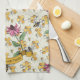 Introducing our elegant light yellow kitchen towel keepsake, featuring a hand-drawn, seemless pattern of Queen Bees & Honeycombs. This charming towel includes a personalised message inside a gold vintage scroll with editable text that says, "The Williamson Family," which can be customised to just a name or any message, making it the perfect Housewarming gift. Decorated with queen bees, exotic flowers, cute golden hearts and honeycombs, this towel exudes both elegance and whimsical charm.