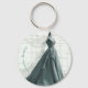 Treat your guests to a chic keepsake with this elegant fashion-themed keychain featuring a hand-drawn gown and vintage perfume bottle.