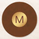 Elegant Faux Brown Texture & Gold Initial Name Round Paper Coaster