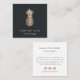 Elegant square business cards feature a faux copper foil pineapple illustration on a crisp black background with two lines of custom text in chic grey. Add your contact information to the reverse side. Includes three rose gold social media icons and a field for your username.
