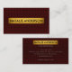 Enhance your professional presence with this premium burgundy and gold business card. The front's realistic crocodile texture adds exotic depth and a warm, high-end feel, paired with a prominent gold metallic bar for your name. The cohesive burgundy back provides crisp gold details for easy personalization. Perfect for creative pros and luxury fields seeking tactile, inviting branding. Customizable and timeless — conveys confidence, style, and genuine polish.