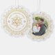 Affordable custom printed holiday photo ornament cards with a simple template for customisation. This fun design features a an ornate geometric snowflake frame with a faux gold foil look. The text reads "Joyful Christmas Wishes" in a simple modern font. Personalise the greeting, add your family name, the year or other custom text. Reverse side has space for your photo or additional text. Use the design tools to choose any background colour, edit the text, add more photos and create a unique one of a kind ornament Christmas photo card.