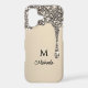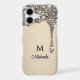 Elegant glitter drip monogram iPhone case designs are perfect for those searching for personalized luxury phone accessories that blend chic aesthetics with custom flair. This eye-catching case features a dazzling silver glitter drip effect cascading from the top, creating a glamorous and sparkly appearance that stands out beautifully against a soft beige background. The customizable design includes a bold initial and name in stylish black fonts, making it ideal for showcasing your identity or gifting to someone special. The high-contrast design delivers a modern glam vibe, while the glitter effect provides a striking contrast that catches the light and enhances the luxurious look. Whether you're shopping for a custom name iPhone case or a glittery monogrammed phone cover, this sophisticated design offers both personalization and visual appeal. The combination of shimmer, minimalism, and elegant typography makes it an ideal choice for fashion-forward individuals who want to protect their device with personalized style. Great for gifting or everyday glam.
