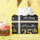 This simple and elegant wrapping paper design features a personalised message like "ANameHere’s 25th Birthday" (with the "25th" having a faux/imitation gold-like colouring look) within a black-coloured square area featuring a simple border outline. The name is in an elegant white-coloured script-like text, and can be personalised. Wrapping paper like this could perhaps be used when wrapping birthday gifts for somebody who is celebrating their twenty fifth birthday. [~Z0000217]