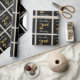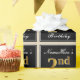 This simple and elegant wrapping paper design features a personalised message like "NameHere’s 2nd Birthday" (with the "2nd" having a faux/imitation gold-like colouring look) within a black-coloured square area featuring a simple border outline. The name is in an elegant white-coloured script-like text, and can be customised. Wrapping paper like this could perhaps be used when wrapping birthday gifts for somebody who is celebrating their second birthday. [~Z0000217]