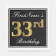 Elegant, Faux Gold 33rd Birthday + Custom Name Napkin