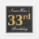 Elegant, Faux Gold 33rd Birthday + Custom Name Napkin