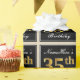 This simple and elegant wrapping paper design features a personalised message like "NameHere’s 35th Birthday" (with the "35th" having a faux/imitation gold-like colouring look) within a black-coloured square area featuring a simple border outline. The name is in an elegant white-coloured script-like text, and can be customised. Wrapping paper like this could perhaps be used when wrapping birthday gifts for somebody who is celebrating their thirty fifth birthday. [~Z0000217]