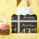 This simple and elegant wrapping paper design features a personalised message like "FirstName’s 43rd Birthday" (with the "43rd" having a faux/imitation gold-like colouring look) within a black-coloured square area featuring a simple border outline. The name is in an elegant white-coloured script-like text, and can be customised. Wrapping paper like this could perhaps be used when wrapping birthday gifts for somebody who is celebrating their forty third birthday. [~Z0000217]