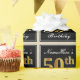This simple and elegant wrapping paper design features a personalised message like "NameHere’s 50th Birthday" (with the "50th" having a faux/imitation gold-like colouring look) within a black-coloured square area featuring a simple border outline. The name is in an elegant white-coloured script-like text, and can be customised. Wrapping paper like this could perhaps be used when wrapping birthday gifts for somebody who is celebrating their fiftieth birthday. [~Z0000217]
