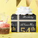 This simple and elegant wrapping paper design features a personalised message like "ANameHere’s 54th Birthday" (with the "54th" having a faux/imitation gold-like colouring look) within a black-coloured square area featuring a simple border outline. The name is in an elegant white-coloured script-like text, and can be personalised. Wrapping paper like this could perhaps be used when wrapping birthday gifts for somebody who is celebrating their fifty fourth birthday. [~Z0000217]