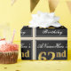 This simple and elegant wrapping paper design features a personalised message like "ANameHere’s 62nd Birthday" (with the "62nd" having a faux/imitation gold-like colouring look) within a black-coloured square area featuring a simple border outline. The name is in an elegant white-coloured script-like text, and can be personalised. Wrapping paper like this could perhaps be used when wrapping birthday gifts for somebody who is celebrating their sixty second birthday. [~Z0000217]