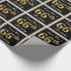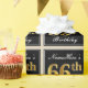 This simple and elegant wrapping paper design features a personalised message like "NameHere’s 66th Birthday" (with the "66th" having a faux/imitation gold-like colouring look) within a black-coloured square area featuring a simple border outline. The name is in an elegant white-coloured script-like text, and can be personalised. Wrapping paper like this could perhaps be used when wrapping birthday gifts for somebody who is celebrating their sixty sixth birthday. [~Z0000217]