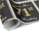 This simple and elegant wrapping paper design features a personalised message like "Name-Here’s 71st Birthday" (with the "71st" having a faux/imitation gold-like colouring look) within a black-coloured square area featuring a simple border outline. The name is in an elegant white-coloured script-like text, and can be personalised. Wrapping paper like this could perhaps be used when wrapping birthday gifts for somebody who is celebrating their seventy first birthday. [~Z0000217]