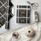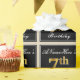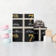 This simple and elegant wrapping paper design features a personalised message like "ANameHere’s 7th Birthday" (with the "7th" having a faux/imitation gold-like colouring look) within a black-coloured square area featuring a simple border outline. The name is in an elegant white-coloured script-like text, and can be customised. Wrapping paper like this could perhaps be used when wrapping birthday gifts for somebody who is celebrating their seventh birthday. [~Z0000217]