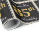 This simple and elegant wrapping paper design features a personalised message like "Name-Here’s 85th Birthday" (with the "85th" having a faux/imitation gold-like colouring look) within a black-coloured square area featuring a simple border outline. The name is in an elegant white-coloured script-like text, and can be personalised. Wrapping paper like this could perhaps be used when wrapping birthday gifts for somebody who is celebrating their eighty fifth birthday. [~Z0000217]