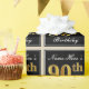 This simple and elegant wrapping paper design features a personalised message like "Name-Here’s 90th Birthday" (with the "90th" having a faux/imitation gold-like colouring look) within a black-coloured square area featuring a simple border outline. The name is in an elegant white-coloured script-like text, and can be personalised. Wrapping paper like this could perhaps be used when wrapping birthday gifts for somebody who is celebrating their ninetieth birthday. [~Z0000217]