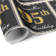 This simple and elegant wrapping paper design features a personalised message like "NameHere’s 95th Birthday" (with the "95th" having a faux/imitation gold-like colouring look) within a black-coloured square area featuring a simple border outline. The name is in an elegant white-coloured script-like text, and can be personalised. Wrapping paper like this could perhaps be used when wrapping birthday gifts for somebody who is celebrating their ninety fifth birthday. [~Z0000217]